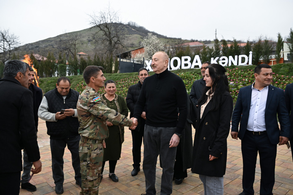 Daha sonra Prezident İlham Əliyev və birinci xanım Mehriban Əliyeva Xanobaya qayıdan kənd sakinləri ilə görüşüblər.