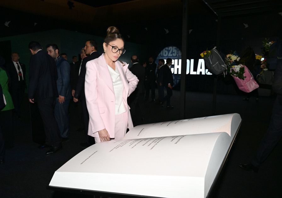 Daha sonra tədbir iştirakçıları Fələstində münaqişə nəticəsində təhsil sisteminin məhv edilməsinə həsr olunan sərgiyə baxıblar.