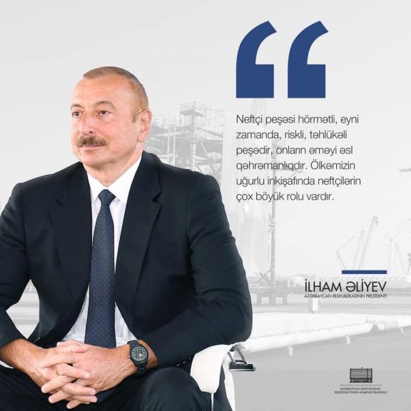 "Neftçi peşəsi hörmətli, eyni zamanda, riskli, təhlükəli peşədir, onların əməyi əsl qəhrəmanlıqdır. Ölkəmizin uğurlu inkişafında neftçilərin çox boyük rolu vardır".