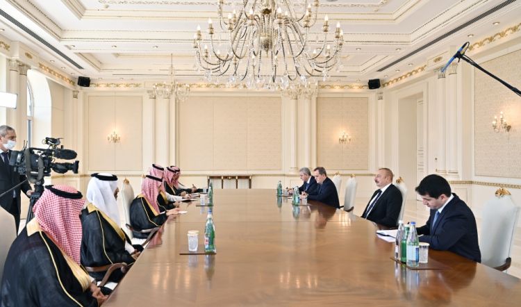 Prezident İlham Əliyev: Sağ olun. Xahiş edirəm, mənim də salamlarımı Kral Əlahəzrətə və Vəliəhdə çatdırasınız. Mənim qardaş ölkənizə səfərim, Kral Əlahəzrəti və Vəliəhdlə müzakirələr aparmağımla bağlı çox yaxşı xatirələrim var. Əminəm ki, sizin səfəriniz artıq mümkün olan ən yüksək səviyyəyə çatmış münasibətlərimizin daha da inkişafında çox vacib rol oynayacaq. Biz ölkələrimiz arasında mövcud olan bu səmimi münasibətlərə böyük dəyər veririk. Biz hər zaman hökumətinizin və xalqınızın dəstəyini hiss etmişik. İşğal dövründə Səudiyyə Ərəbistanı az sayda olan ölkələrdən biri idi ki, bizim haqlı işimizə davamlı dəstək verirdi. Bunun bariz nümunəsi işğal dövründə Səudiyyə Ərəbistanının Ermənistanla diplomatik münasibətlər qurmaması idi. Bu addımı isə dünyada yalnız üç ölkə atıb və biz buna görə həqiqətən də minnətdarıq.