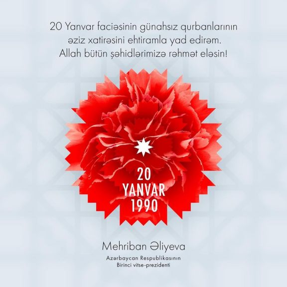 Azərbaycanın Birinci vitse-prezident Mehriban Əliyeva instaqram hesabında 20 Yanvar faciəsinin ildönümü ilə bağlı paylaşım edib.