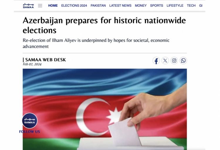 NUHÇIXAN xəbər verir ki, bu ölkənin “Samaa TV“ platformasının yaydığı məlumatda Azərbaycanda keçirilən seçkilərin tarixi əhəmiyyət daşıdığı qeyd edilib. Bildirilib ki, bu seçkilərin tarixi əhəmiyyəti, həmçinin onun ölkənin suverenliyinin tam bərpasından sonra keçirilən ilk seçkilər olması və bununla da ölkədə yeni dövrün başlanğıcını şərtləndirməsidir.