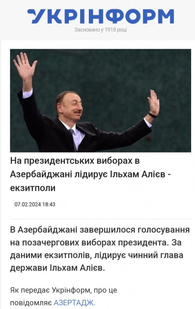 NUHÇIXAN xəbər verir ki, “Ukrinform”, “RBK-Ukrayna”, “Korrespondent”, “LB”, “Obozrevatel”, “1 News.ua” və digər informasiya agentliklərində, xəbər portallarında dərc edilən məqalələrdə seçkilərdə Prezident İlham Əliyevin növbəti dəfə parlaq qələbə qazandığı diqqətə çatdırılıb.