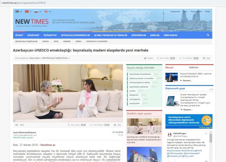 Lakin burada bir incə məqam da vardır. UNESCO fəal üzvlərlə əməkdaşlıqdan daha çox faydalana bilir. Yəni məsələ yalnız BMT-nin bu ixtisaslaşmış qurumunun yerinə yetirdiyi missiyada deyil. Başlıca şərt üzv dövlətin fəal iştirakı və xoşməramlı mövqe tutması ilə bağlıdır. Bu aspektdə heç də bütün üzvlər eyni qiymətləndirilmir. Azərbaycan isə bu istiqamətdə də digərlərindən müsbət mənada fərqlənir.