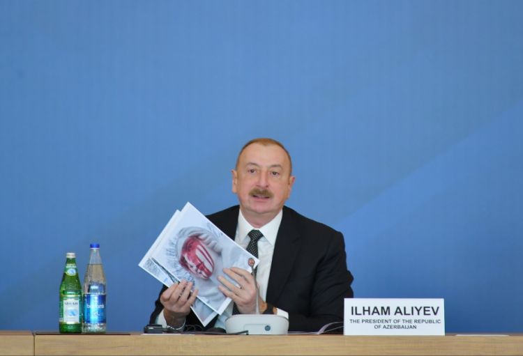 Dövlətimizin başçısı, həmçinin qeyd edib: “Bu, əslində, onu göstərir ki, biz suverenliyimizi bərpa etdikdən sonra nə ilə üzləşmişik. Bu, əslində, ikili standartların nümayişidir”. Fransanın ərazi bütövlüyünü bərpa etməyə kömək olmaq üçün Ukraynaya hərbi qüvvələrini göndərməsi ilə bağlı bəyanata toxunan Prezident İlham Əliyev vurğulayıb ki, bizim ərazi bütövlüyümüzün bərpasına gəldikdə, onlar Azərbaycanı cəzalandırmağa çalışırlar.