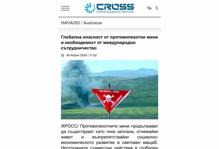 Ölkəmizin Bolqarıstandakı səfirliyindən NUHÇIXAN-a bildiriblər ki, yazılarda minaların dünyanın müxtəlif regionlarında sosial-iqtisadi inkişafa mane olması və insanların həyatına təhlükə törətməsindən bəhs edilir. Həmçinin Avropaya yaxın bir bölgədə ciddi mina təhlükəsinin mövcud olduğu və bunun Ermənistanın keçmişdə Azərbaycan ərazilərinin işğal etməsindən miras qaldığı bildirilir, işğaldan azad edilmiş ərazilərdə hələ də qalan milyonlarla minanın əhalinin öz evlərinə geri qayıtmasına maneə törətdiyi, iqtisadi fəaliyyətə ciddi əngəl yaratdığı vurğulanır. Minaların təmizlənməsi üçün ən azı 25 milyard ABŞ dolları vəsait və uzun müddət tələb olunduğuna diqqət çəkilib.