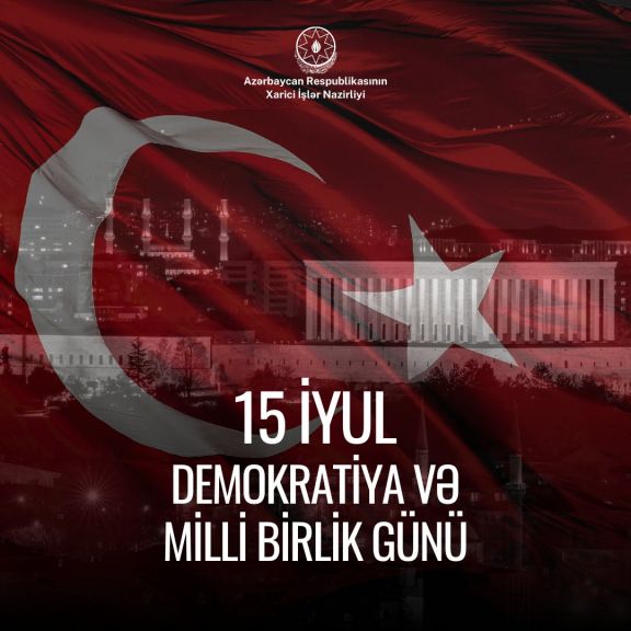 Azərbaycan Xarici İlər Nazirliyi (XİN) 15 iyul - Demokratiya və Milli Birlik Günü münasibətilə Türkiyəni təbrik edib.