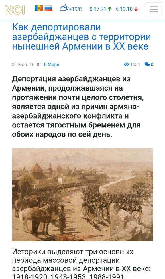 Moldovalı jurnalistin yazdığı araşdırma məqaləsində vurğulanır ki, tarixçilər XX əsrdə azərbaycanlıların Ermənistandan kütləvi deportasiyasının üç əsas dövrünü müəyyən ediblər: 1918-1920-ci, 1948-1953-cü və 1988-1991-ci illər.