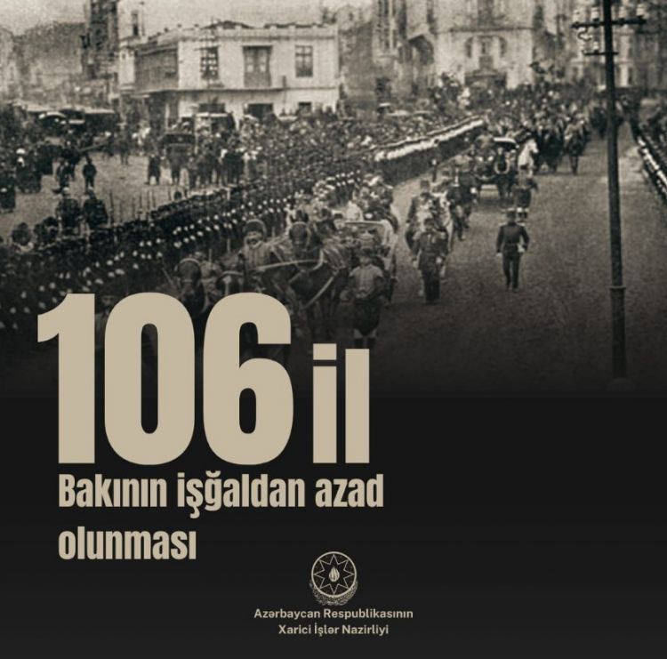 Azərbaycanın Xarici İşlər Nazirliyi Bakının işğaldan azad edilməsinin ildönümü ilə bağlı paylaşım edib.