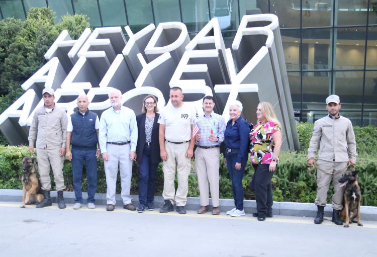 ABŞ səfiri Mark Libbi hava limanında itlərin qarşılanmasında iştirak edib.