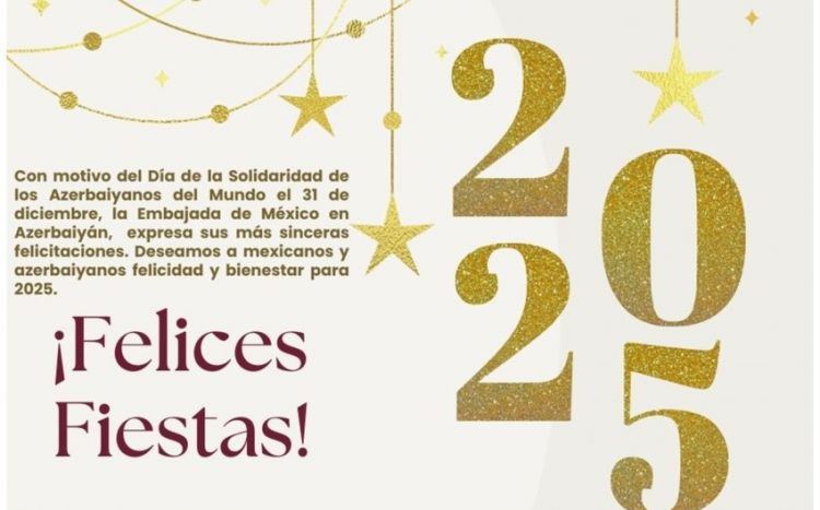 "Meksikanın Azərbaycandakı səfirliyi 31 Dekabr Dünya Azərbaycanlılarının Həmrəyliyi Gününü səmimi qəlbdən təbrik edir. 2025-ci ildə meksikalılara və azərbaycanlılara xoşbəxtlik və firavanlıq arzu edirik", - paylaşımda qeyd olunub.