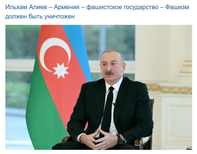 “İnterpressnews.ge” Azərbaycan Prezidentinə istinadla yazır: “Ermənistanın silahlanması, sadəcə olaraq, yeni gərginliyə gətirib çıxaracaq. Biz bunu istəmirik. Biz sülh istəyirik. Müstəqil Ermənistan dövləti, əslində, faşist dövlətdir. Çünki əgər bu ölkəyə 30 ilə yaxın faşist ideologiyasının daşıyıcıları rəhbərlik ediblərsə, bu ölkəni onlar elə özləri kimi də formalaşdırıblar. Ona görə faşizm məhv edilməlidir. Bunu ya Ermənistan rəhbərliyi məhv edəcək, ya da biz məhv edəcəyik. Bizim başqa çarəmiz yoxdur”.