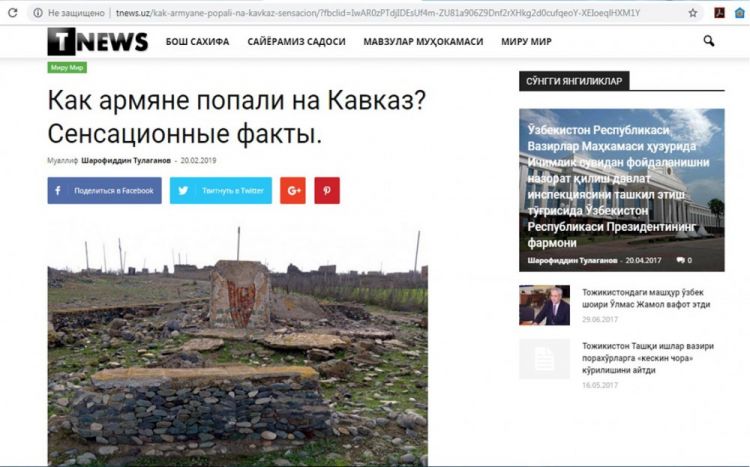 Özbəkistanın tnews.uz portalında rus dilində “Ermənilər Qafqaza necə gəlib? Sensasiyalı faktlar” sərlövhəli məqalə yerləşdirilib.