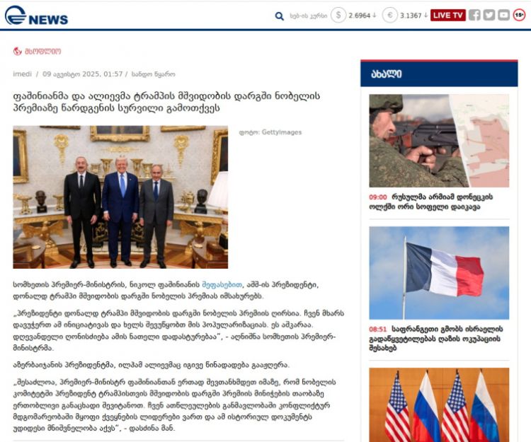 NUHÇIXAN xəbər verir ki, “imedinews.ge, “interpressnews.ge”, “resonancedaily.com”, “aktual.ge”, “for.ge”, “netgazeti.ge”, “tabula.ge”, “info9.ge”, “news.ge”, “newposts.ge”, “interpress.ge”, “24news.ge”, “qafqazturk.com” informasiya portalları, “1tv.ge” televiziya kanalı avqustun 9-da silsilə materiallar yayıblar.