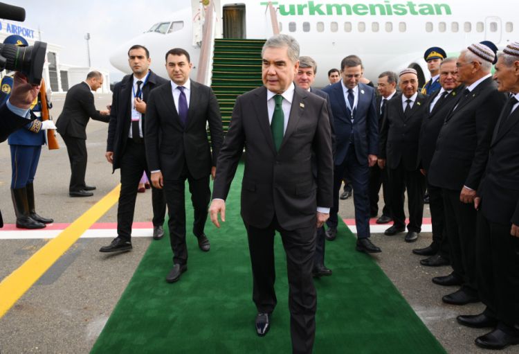 Türkmənistan Xalq Məsləhətinin Sədri Qurbanqulu Berdiməhəmmədovu hava limanında Azərbaycanın mədəniyyət naziri Adil Kərimli və digər rəsmi şəxslər qarşılayıblar.