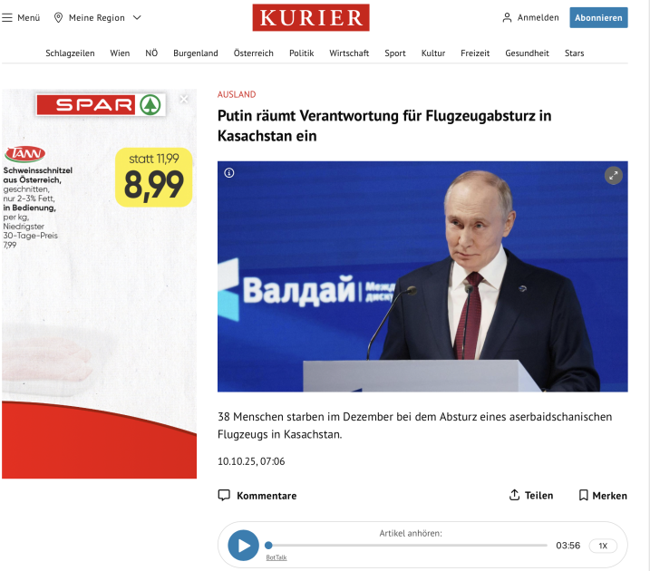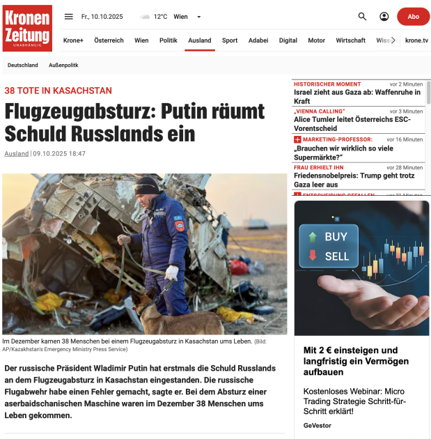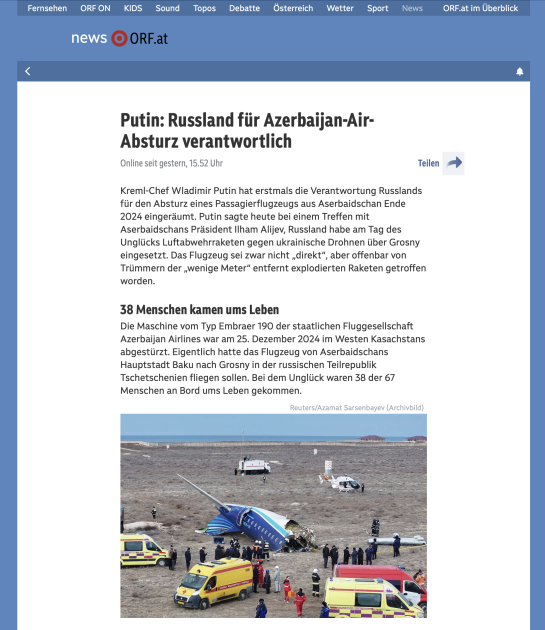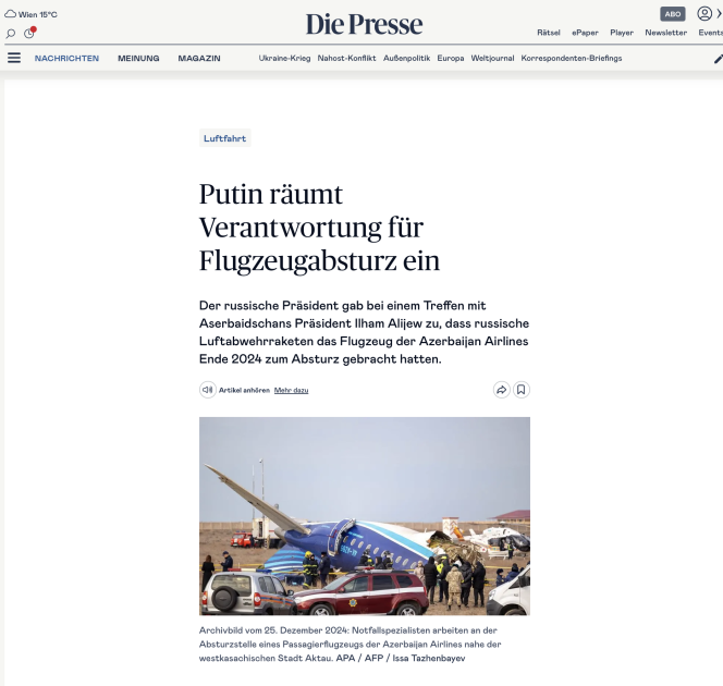 Avstriya mətbuatı: Rusiya AZAL təyyarəsinin qəzasına görə məsuliyyəti öz üzərinə götürüb - FOTOLAR