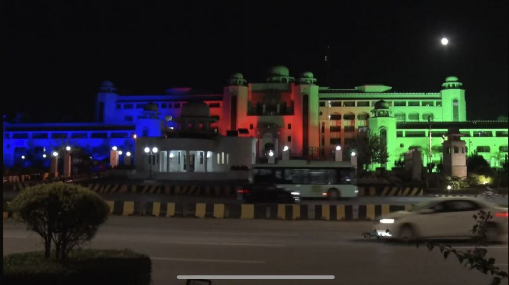 NUHÇIXAN xəbər verir ki, Zəfər Günü münasibəti ilə qardaş ölkədəki bir çox bina, o cümlədən Baş nazir ofisi, Parlament və Pakistan Ali Məhkəməsinin binası Azərbaycan bayrağının rəngləri ilə işıqlandırılıb. Bundan başqa, ölkənin simvolu hesab olunan Pakistan abidəsi binası, bir çox küçələr Azərbaycan, Pakistan və Türkiyə bayraqları ilə bəzədilib.