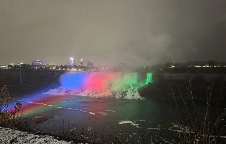 Kanadanın Ontario əyalətində yerləşən Niaqara şəlaləsi Azərbaycan bayrağının rəngləri ilə işıqlandırılıb.