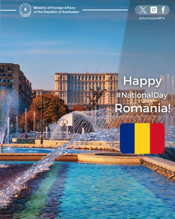 Azərbaycanın Xarici İşlər Nazirliyi (XİN) Rumıniyanı Milli Günü münasibətilə təbrik edib.