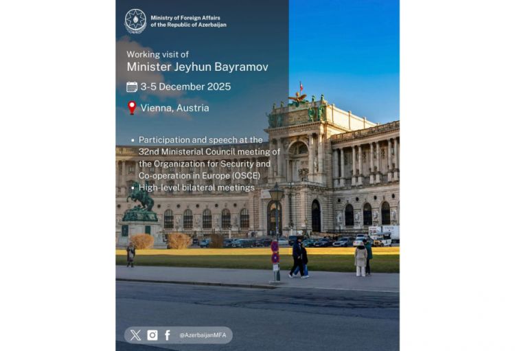 Azərbaycan xarici işlər naziri Ceyhun Bayramov dekabrın 3-də Avstriyanın paytaxtı Vyana şəhərinə işgüzar səfərə yola düşüb.