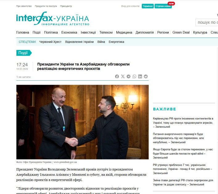 Ukraynanın aparıcı media orqanları Azərbaycan Prezidenti İlham Əliyevin Münxen Təhlükəsizlik Konfransında iştirakına, keçirdiyi görüşlərə və səsləndirdiyi fikirlərə geniş yer ayırıb.