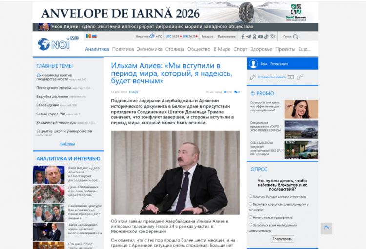 Moldovanın nüfuzlu “Noi.md” xəbər portalı Prezident İlham Əliyevin Münxen Təhlükəsizlik Konfransı çərçivəsində “France 24” telekanalına müsahibəsinə dair məqalə dərc edib.