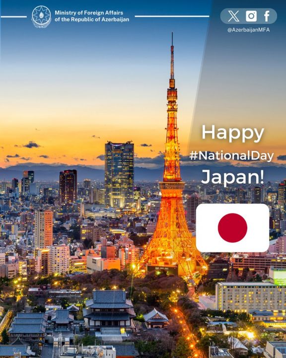 Azərbaycan Xarici İşlər Nazirliyi Yaponiya hökuməti və xalqını Milli Günü münasibətilə təbrik edib.