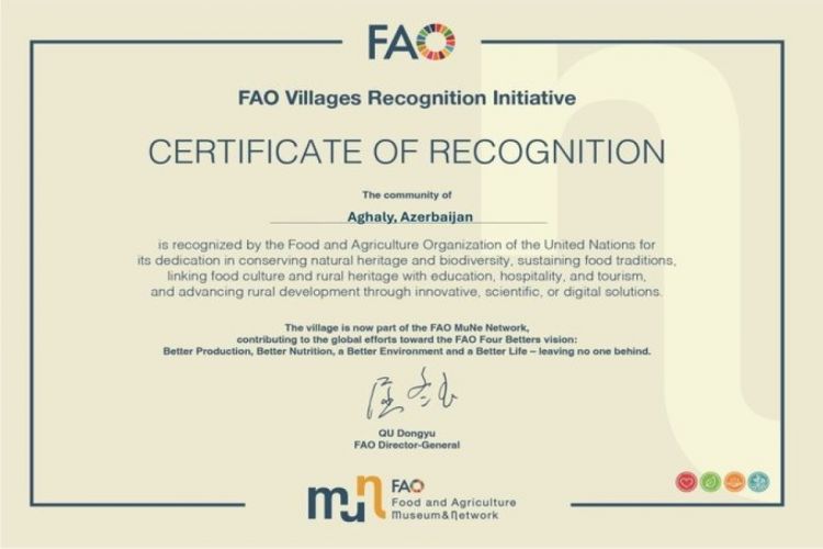 Zəngilanın Ağalı kəndi Birləşmiş Millətlər Təşkilatının "Qida və Kənd təsərrüfatı Təşkilatı" (UN, FAO) tərəfindən təbii irsin qorunması, biomüxtəlifliyin dəstəklənməsi və dayanıqlı kənd inkişafına verdiyi töhfəyə görə "Model Kəndlər Şəbəkəsinə" daxil edilib.