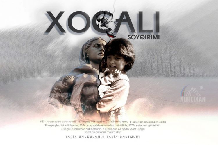 Tarixinin müxtəlif dönəmlərində ermənilər tərəfindən soyqırımına məruz qalan Azərbaycan xalqı növbəti belə faciə ilə 34 il bundan əvvəl, 1992-ci il fevralın 25-dən 26-na keçən gecə keçmiş sovet ordusunun köməyi ilə Azərbaycanın Xocalı şəhərini işğal edərək yer üzündən silən ermənilər şəhərin sakinlərinə qarşı qətliam həyata keçirdilər. XX əsrdə azərbaycanlılara qarşı soyqırımı törədən ermənilər 613 nəfəri, o cümlədən 106 qadını və 63 uşağı xüsusi qəddarlıqla qətlə yetirdilər. 1275 nəfər əsir aparıldı, 150 nəfər itkin düşdü.