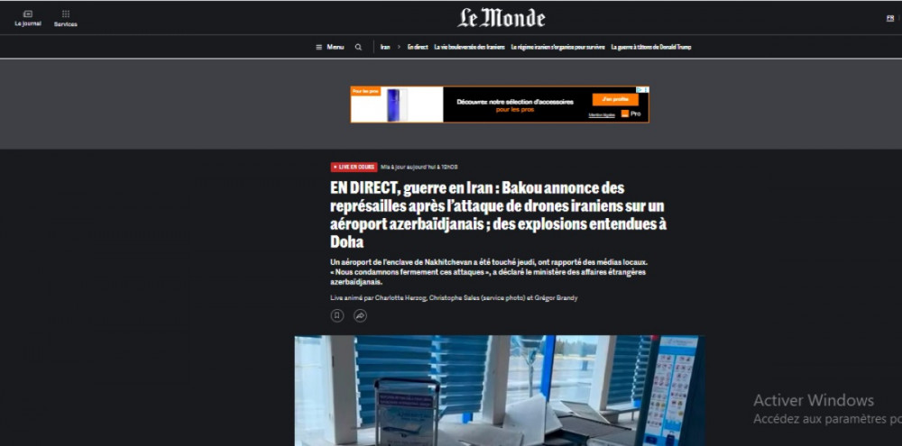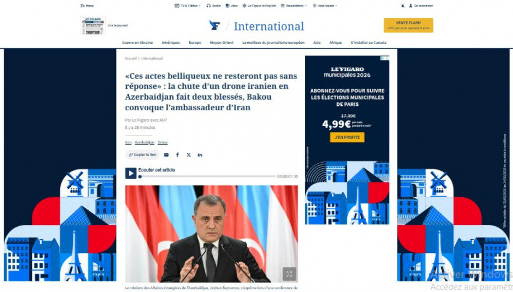 Fransanın “Le Monde”, “Le Figaro” qəzetləri və “Fance 24” televiziya kanalı İranın Naxçıvana dron hücumu barədə məlumat yayıb.