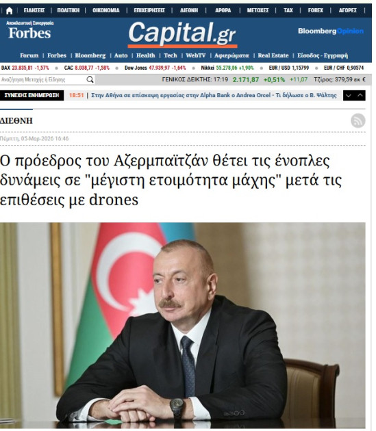 Yunanıstanın iqtisadi və siyasi xəbər portalı "Capital.gr" yazır ki, hadisədən sonra Prezident İlham Əliyevin göstərişi ilə Azərbaycan Silahlı Qüvvələri yüksək döyüş hazırlığı vəziyyətinə gətirilib. Azərbaycan rəhbərliyi ölkənin təhlükəsizliyinə qarşı yönəlmiş hər hansı təhdidə operativ cavab verməyə hazırdır və vəziyyət diqqətlə izlənilir.