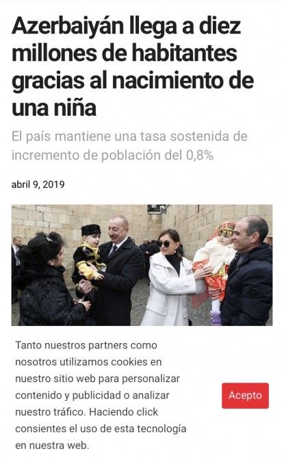 “The Diplomat in Spain” jurnalının elektron versiyasında “Qız uşağının doğulması ilə Azərbaycan əhalisinin sayı 10 milyona çatdı” adlı məqalə yayılıb.