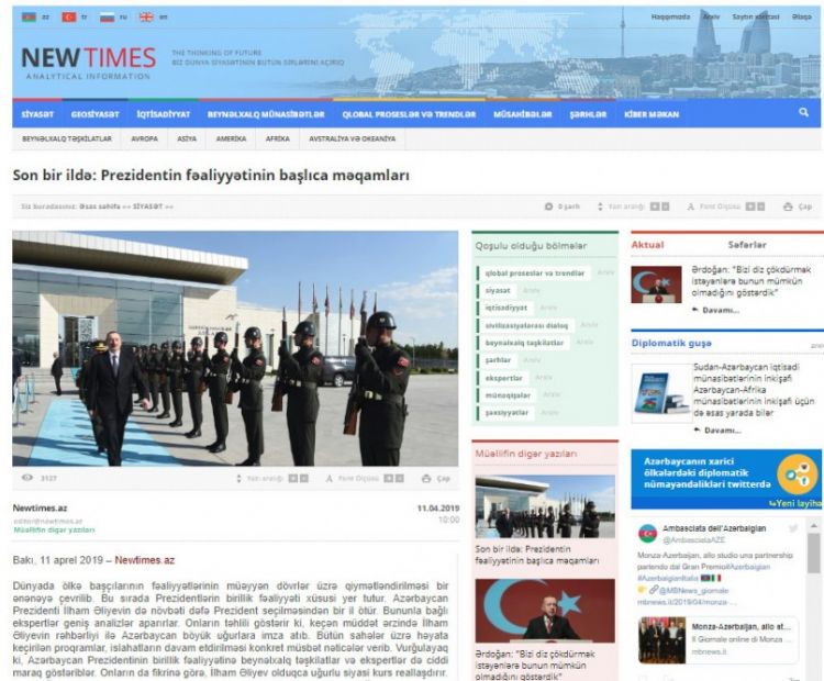 İlham Əliyevin növbəti dəfə Prezident seçilməsindən bir il ötür. Ekspertlər bu müddəti analiz edir, qiymətləndirmələr aparır və proqnozlar verirlər. Bir sıra xarici ekspertlər və təşkilatlar da Azərbaycan Prezidentinin fəaliyyəti barədə öz fikirlərini ifadə edirlər. Aparılan müqayisələr, gətirilən faktlar, həyata keçirilən proqramlar sübut edir ki, ölkə rəhbərinin son bir ildəki fəaliyyəti tamamilə uğurlu olub. Müstəqil dövlət quruculuğu prosesi məzmunca yeni səviyyəyə yüksəlib. Bu, daxili və xarici siyasətə eyni dərəcədə aiddir. Əldə olunan nəticələrin işığında həmin qənaətin doğruluğuna tam əminlik yaranır.