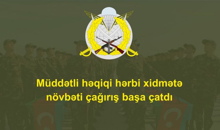 Prezident İlham Əliyevin bu il fevralın 28-də imzaladığı “Azərbaycan Respublikası vətəndaşlarının 2019-cu il aprelin 1-dən 30-dək müddətli həqiqi hərbi xidmətə çağırılması və müddətli həqiqi hərbi xidmət hərbi qulluqçularının ehtiyata buraxılması haqqında” Sərəncama uyğun olaraq, aprelin 1-dən başlanmış növbəti həqiqi hərbi xidmətə çağırış başa çatıb.