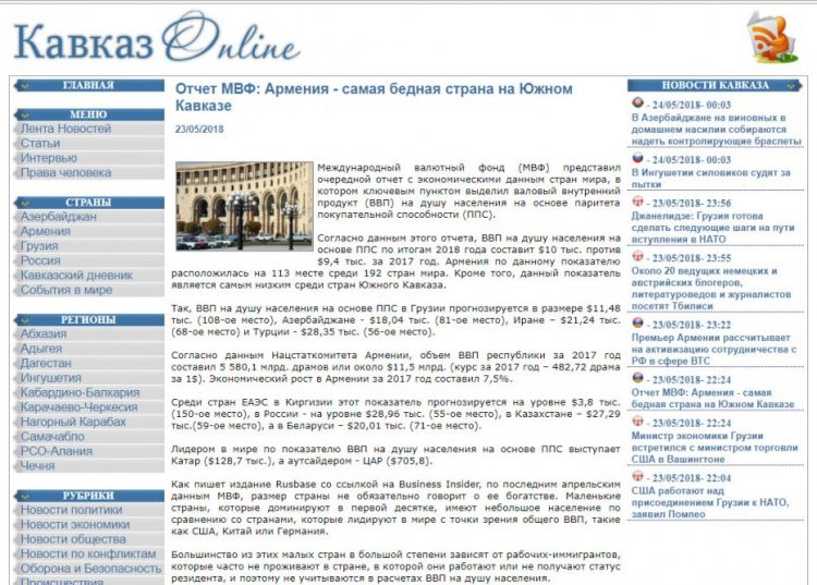 NUHÇIXAN “Кавказ Online” analitik informasiya portalına istinadla xəbər verir ki, bu hesabata əsasən, alıcılıq qabiliyyəti pariteti əsasında adambaşına düşən ÜDM 2018-ci ilin sonunda 10 min dollar olacaq. Bu göstərici 2017-ci ildə 9,4 min dollar olub. Ermənistan bu göstərici üzrə 192 ölkə arasında 113-cü yeri tutub. Bundan başqa, bu göstərici Cənubi Qafqaz ölkələri arasında ən aşağı göstəricidir.