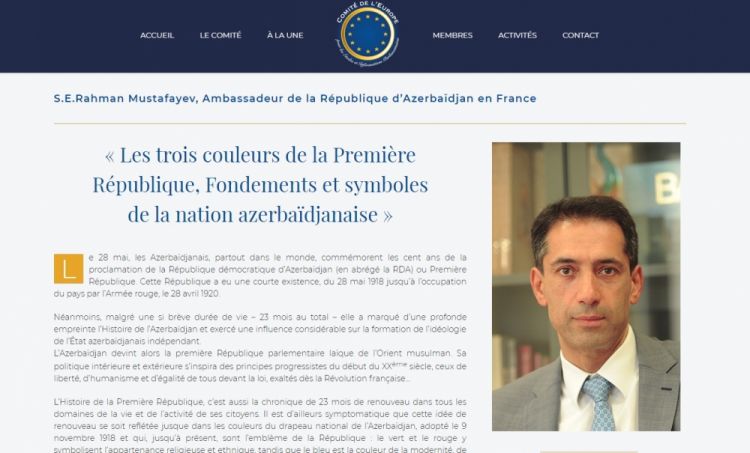 “Comitedeleurope” portalında Azərbaycanın Fransadakı səfiri Rəhman Mustafayevin “Birinci Respublikanın üç rəngi, Azərbaycan xalqının təməli və rəmzləri” adlı məqaləsi dərc olunub.