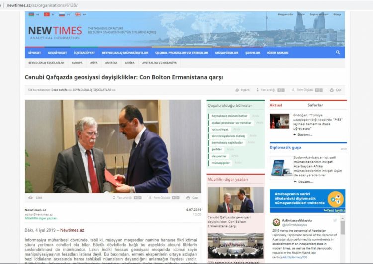 “Newtimes.az” portalında “Cənubi Qafqazda geosiyasi dəyişikliklər: Con Bolton Ermənistana qarşı” sərlövhəli məqalə dərc edilib. NUHÇIXAN məqaləni təqdim edir.