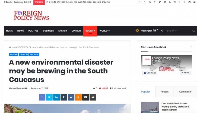 ABŞ-ın “Foreign Policy News” portalında Ermənistanda “Amulsar” qızıl mədənində işlərin davam etməsinin ətraf mühitə ziyan verməsindən və faciəvi ekoloji problemlərə gətirib çıxaracağından bəhs edən məqalə dərc olunub.