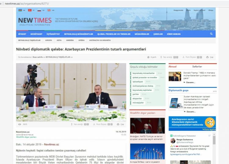 Burada geosiyasi kontekstdə iki məqamı vurğulamaq maraqlı olardı. Birincisi, İlham Əliyev Aşqabadda faktiki olaraq dünyaya erməni faşizminin hələ də mövcud olduğunu çatdırdı. Bunun konkret sübutu faşistlərin əlaltısına milli qəhrəman kimi abidənin qoyulması, onun adına küçənin verilməsi və digər hallardır. İnformasiya müharibəsi kontekstində bu məqam N.Paşinyanın "erməni demokratiyası", "erməni islahatları", "məxməri inqilab" kimi artıq iki ildir danışdıqlarının cəfəngiyat olduğunu göstərir. Reallıqda Ermənistanda bir faşist düşüncəsinin mövcud olduğunu və buna görə də faşistlik edənlərin xatirəsini əbədiləşdirməyə çalışdıqlarını aydın görmək olar.