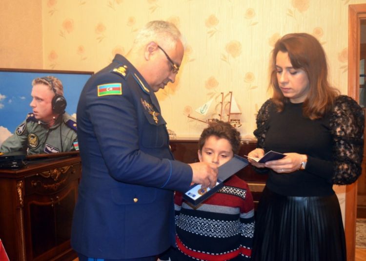 Medalı təqdim etdikdən sonra general-leytenant R.Tahirov hərbi pilotun ailəsinin qayğıları ilə maraqlanıb və bayram hədiyyələrini təqdim edib.
