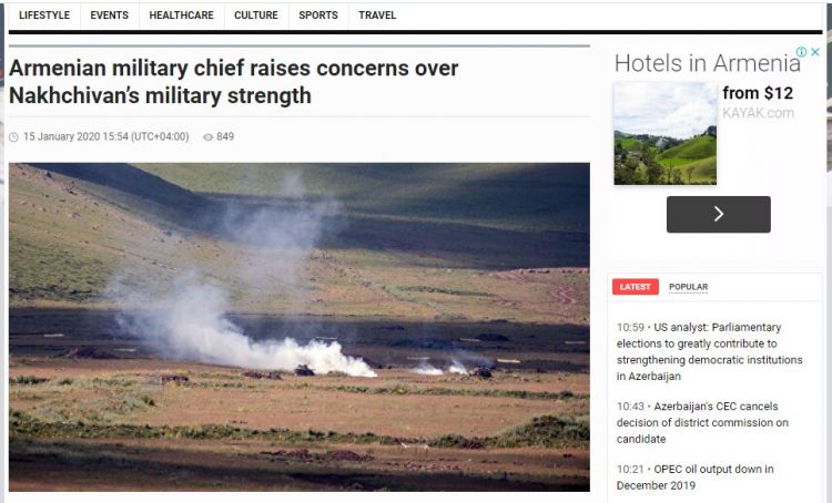 Bu yaxınlarda Ermənistan Silahlı Qüvvələrinin Baş Qərargah rəisi, general-leytenant Artak Davtyan Azərbaycanın Naxçıvandakı hərbi birləşmələrin maddi-texniki bazasının gücləndirilməsindən narahat olduqlarını bildirib.