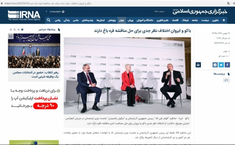 İranın dövlət xəbər agentliyi olan İRNA Azərbaycan Prezidenti İlham Əliyevin və Ermənistanın baş naziri Nikol Paşinyanın iştirakı ilə Münxen Təhlükəsizlik Konfransı çərçivəsində keçirilən panel müzakirələr barədə məqalə yayıb.