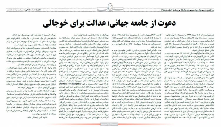 Təbrizdə nəşr olunan “Söhrab” qəzetində Xocalı soyqırımı haqqında məqalə dərc olunub.