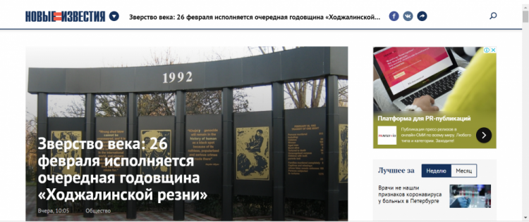 Rusiyanın “Novıye izvestiya” qəzetində “Əsrin vəhşiliyi: fevralın 26-da Xocalı qətliamının növbəti ildönümüdür” adlı məqalə dərc olunub.