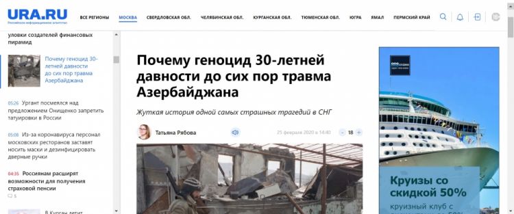 Rusiyanın “Ura.ru” informasiya agentliyinin saytında “Niyə 30 il bundan əvvəl baş vermiş soyqırımı Azərbaycan üçün hələ də sarsıntıdır” sərlövhəli məqalə dərc edilib.