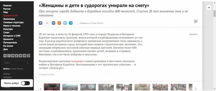 Rusiyanın “Lenta.ru” internet-nəşrində Xocalı faciəsi barədə xəbər və qurbanların şəkilləri dərc edilib.
