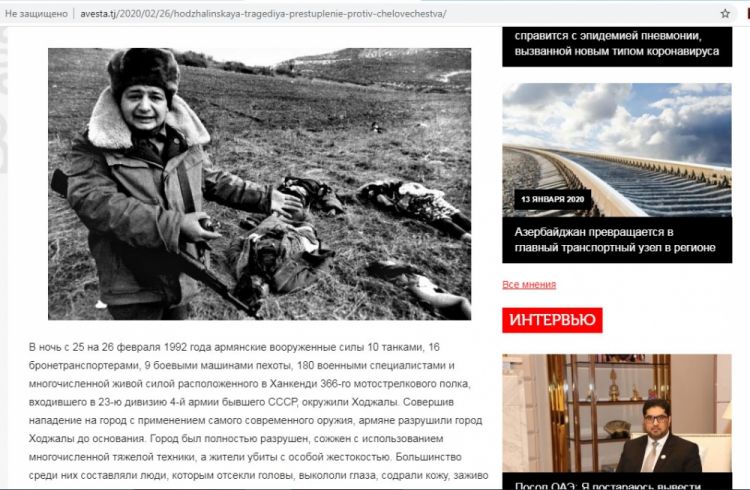Tacikistanın “avesta.tj” portalında “Xocalı faciəsi - insanlığa qarşı törədilmiş cinayət” sərlövhəli məqalə dərc edilib.