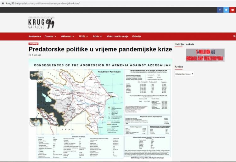 Dağlıq Qarabağda keçirilmiş qondarma “parlament və prezident seçkiləri” Bosniya və Herseqovina ziyalılarını da hiddətləndirib. Bu barədə məqalə dərc etdirən “İntellektuallar Assosiasiyası”nın prezidenti Adil Kulenoviç baş vermiş bu qanunsuzluğu tənqid edib.