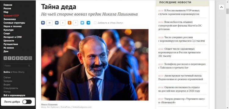 Materialda qeyd olunur ki, Ermənistanın baş naziri Nikol Paşinyanın babasının Böyük Vətən müharibəsi illərində faşistlərlə ehtimal olunan əməkdaşlığı səbəbindən baş verən qalmaqalın Rusiya mediasında və beynəlxalq KİV-lərdə müzakirəsi davam edir.