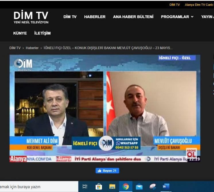 NUHÇIXAN İnformasiya Agentliyi xəbər verir ki, bu fikirləri Türkiyənin Xarici işlər naziri Mövlud Çavuşoğlu Alanyada fəaliyyət göstərən “DİM” TV-nin efirində səsləndirib.